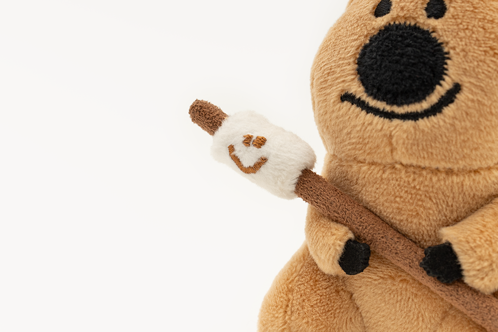 露營絕對少不了必備的棉花糖,Quokka手持棉花糖呈現最經典的畫面